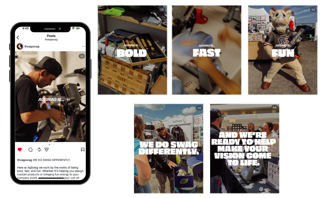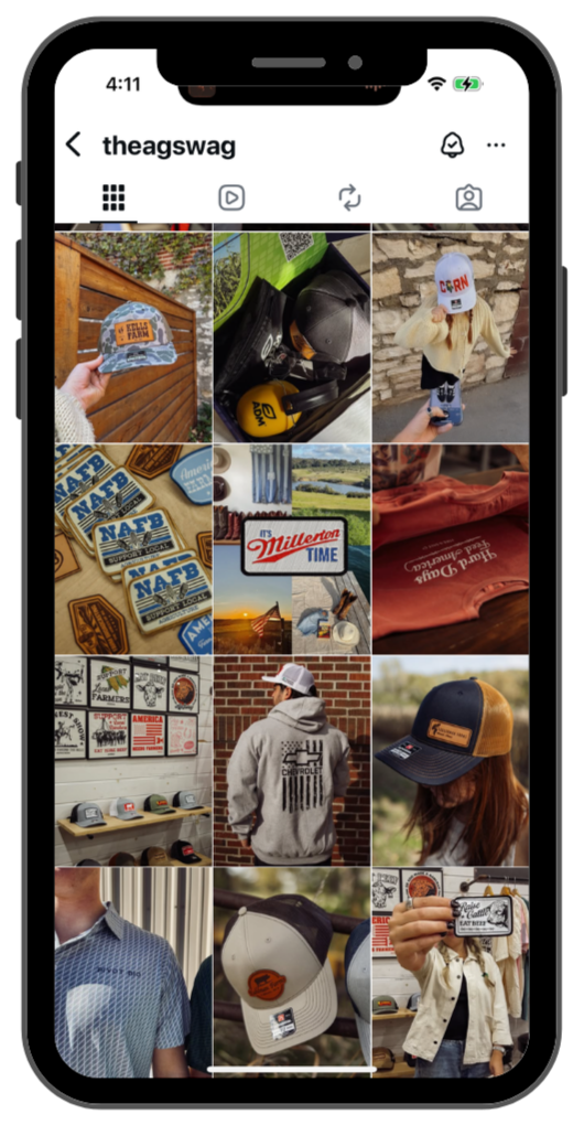 In September 2025 I started working as the Social Media Manager for a start up apparel company, AgSwag. I have built the AgSwag brand’s community online through informative and storytelling content. By combining my previous knowledge of photography and short form video with strategic social outreach, the online presence of AgSwag is helping shape creative marketing in the agriculture industry.